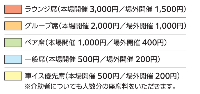 ※介助者の方には、同じ座席に別途イスをご用意いたします。