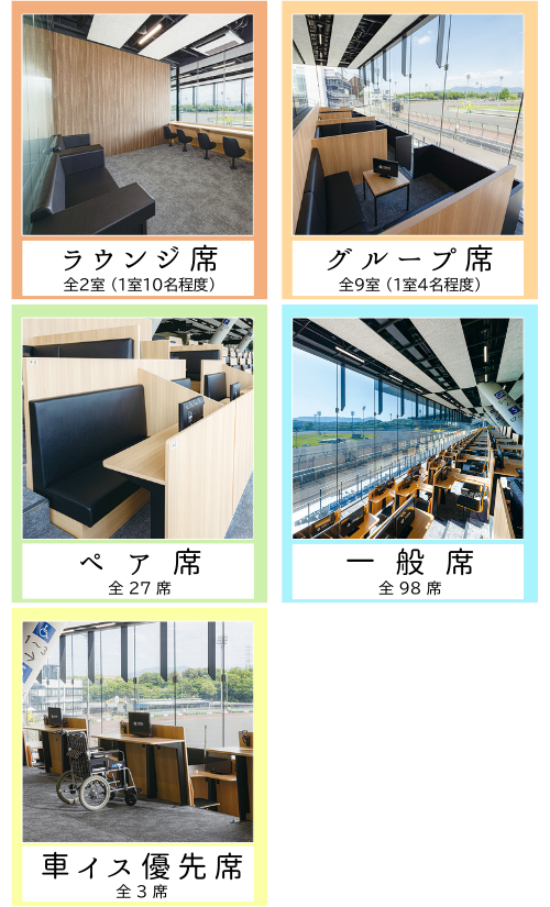 飯塚オートレース場の有料席は、メインスタンド2F(全席指定席)です。