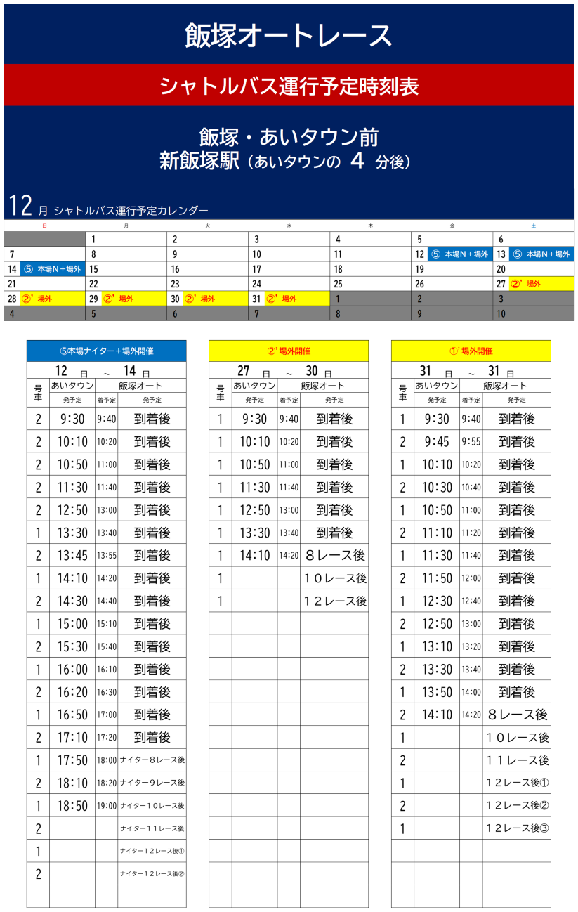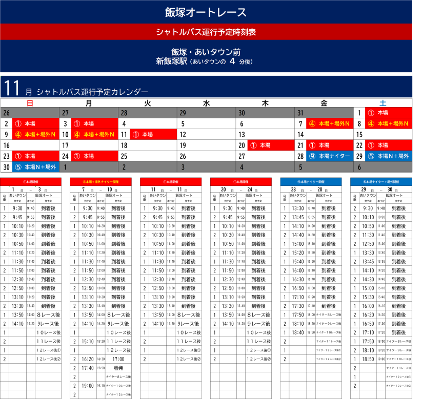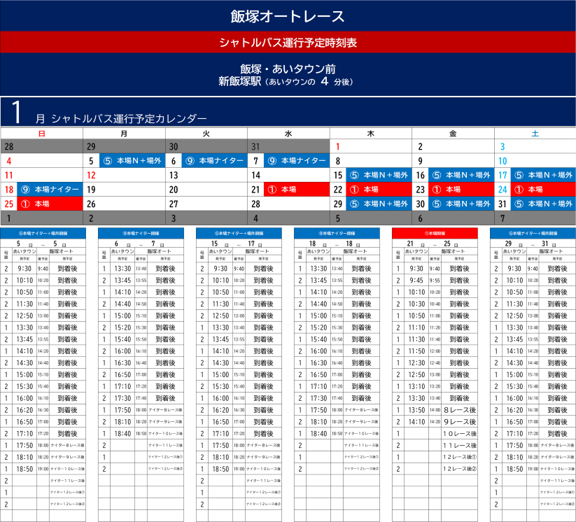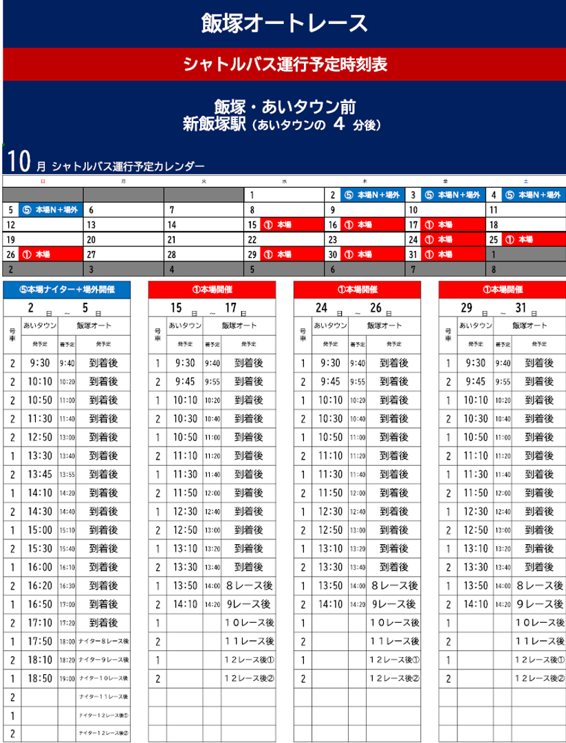飯塚オートレース場行きの無料バスは、本場開催・SG場外発売時に運行いたします。