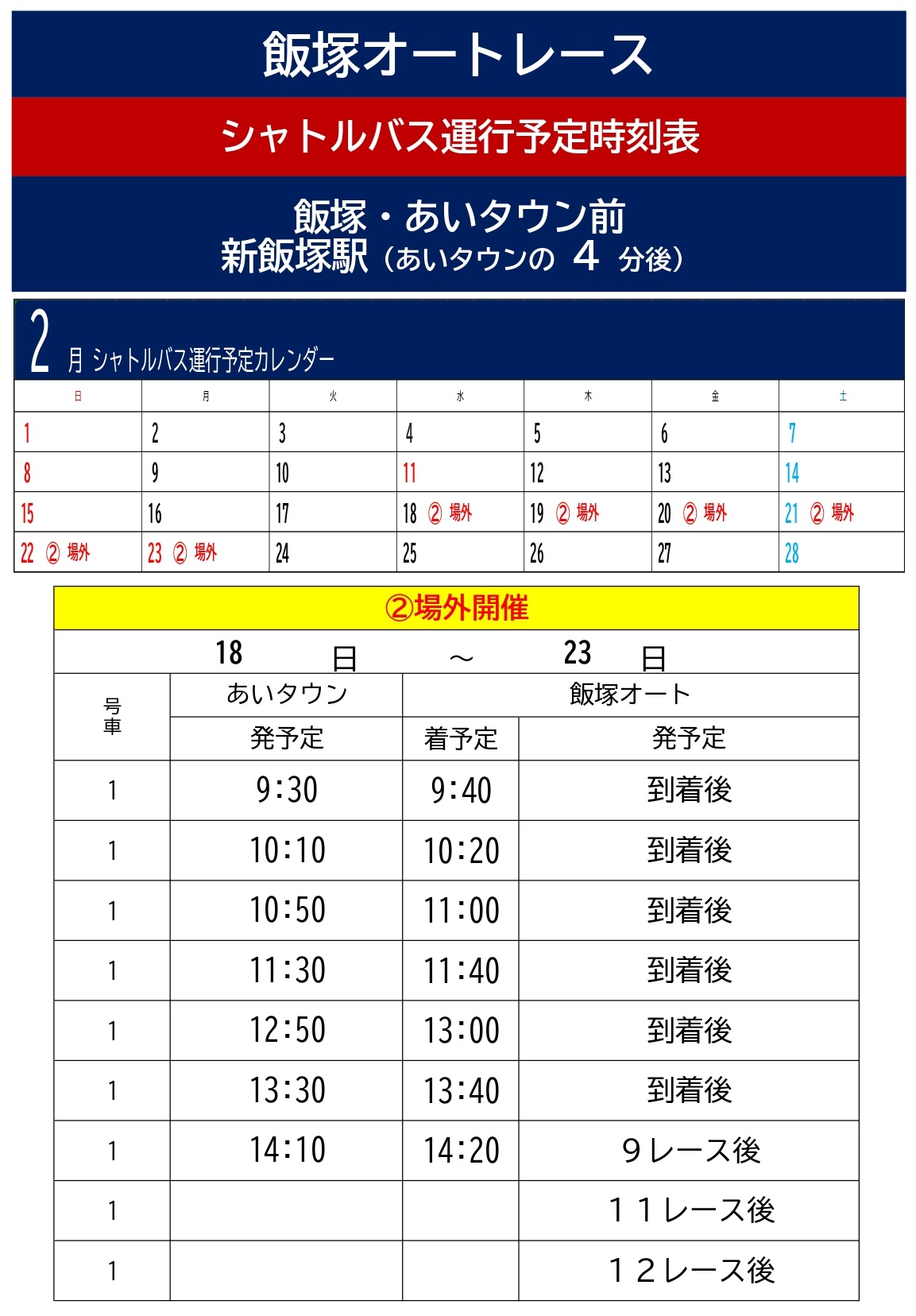 ▼2月無料バス時刻表
