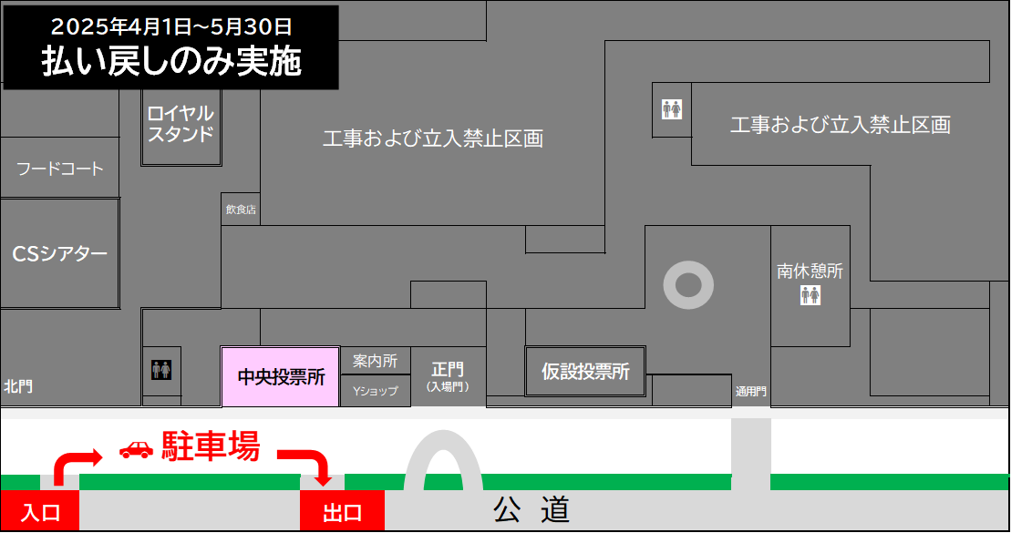 ただし、2025年4月1日~5月30日までは、払い戻しのみ中央投票所にて実施いたします。